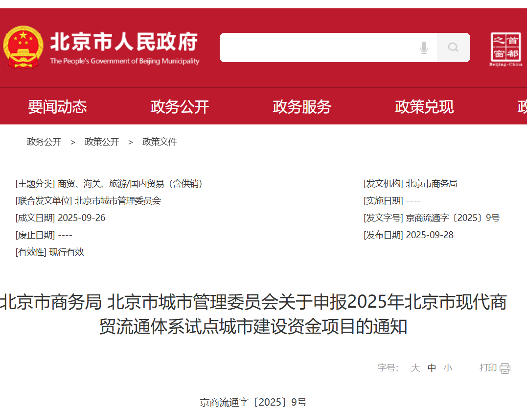 北京市商务局与市城管委联合发布了《关于申报2025年北京市现代商贸流通体系试点城市建设资金项目的通知》,为首都的再生资源回收与商贸流通领域带来了重大利好。该政策不仅旨在推动连锁超市、社区菜店、便利店等民生商业的新建直营门店发展,更将重点放在了城乡再生资源回收体系的全面升级上,单个项目最高可获得2000万元的补贴支持。...2025-10-11